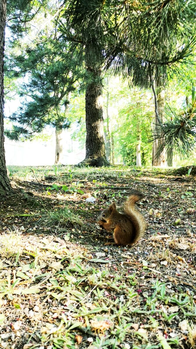 Kurren aamupalahetki. Pieni orava tallentui kameraan kävelylenkillä.