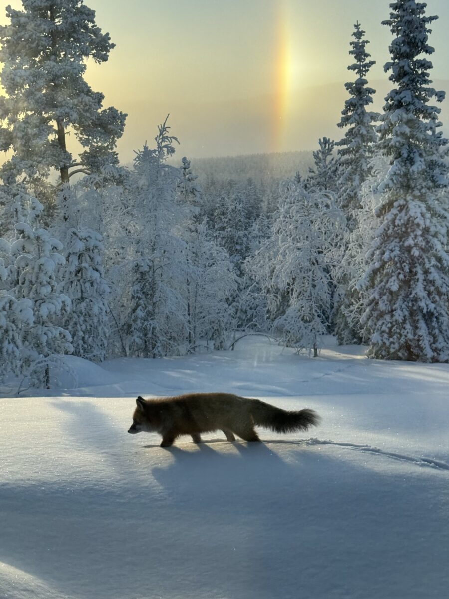 Kuvailin Pallastunturin taustalla etenevää haloa ja sattui siihen kettu päiväkävelylle.