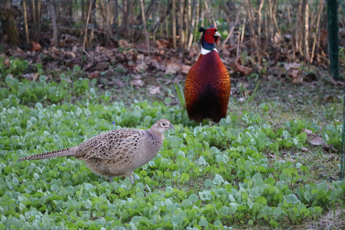 Fasaanit löysivät toisensa pihallamme viime keväänä. Tässä vaiheessa ollaan vielä varovaisen flirttailun vaiheessa.