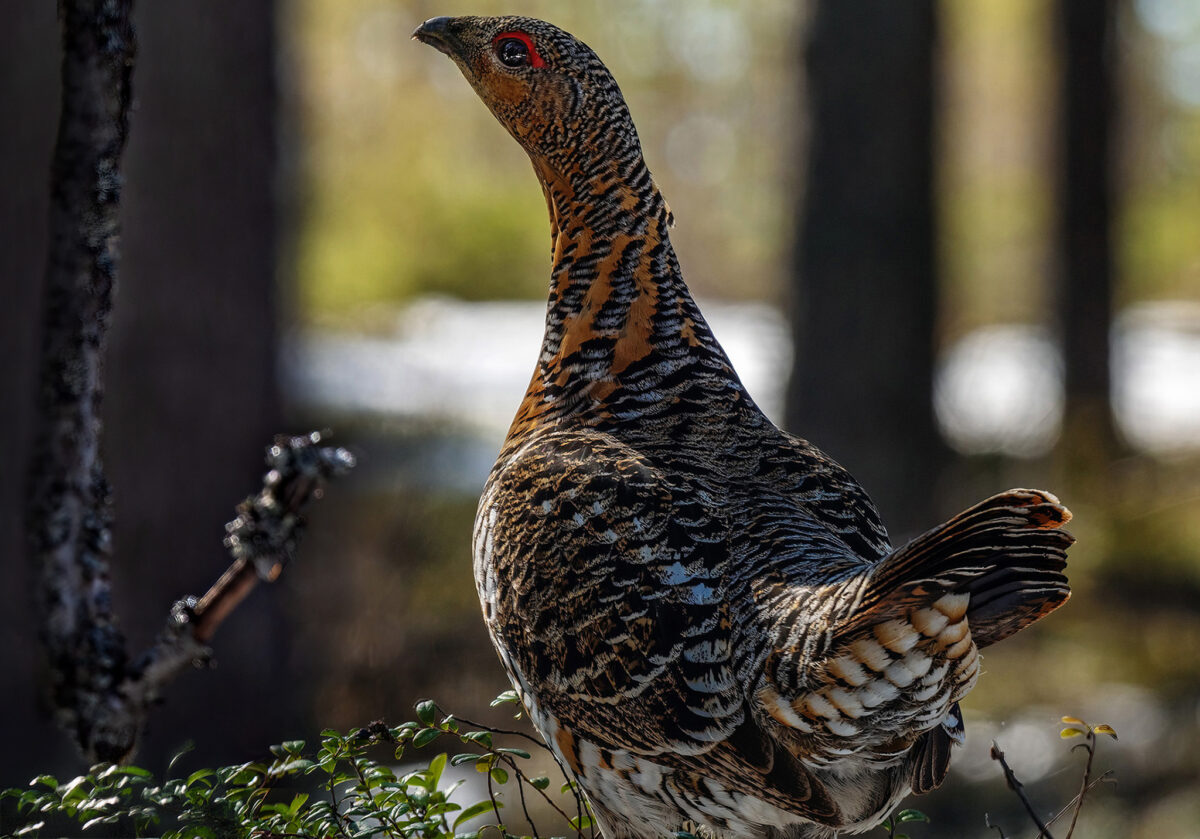 Aikaisin keväällä pienen metsätien penkalla kevään kirkkautta katseli tämä metsotyttö. Läyliäinen, Loppi.