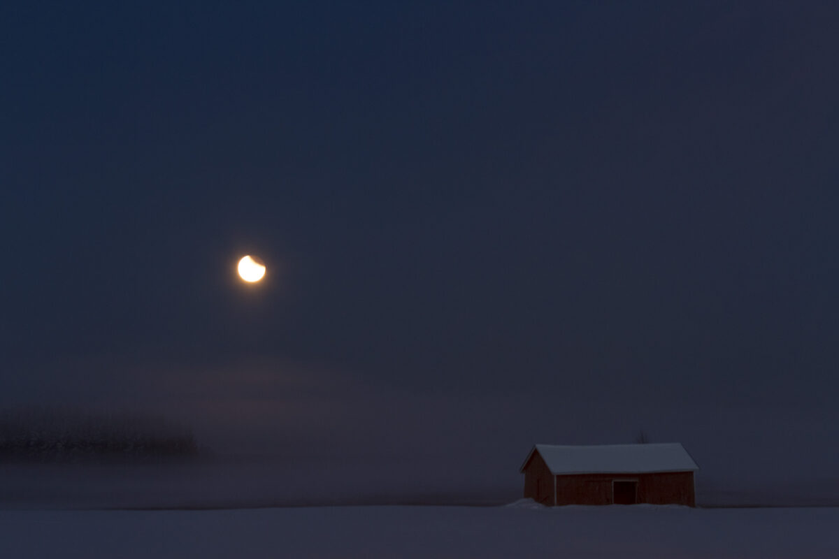 Täysikuu ja usvaa ja lato,siinä Suomalainen maisema minulle,kuin maalaus.