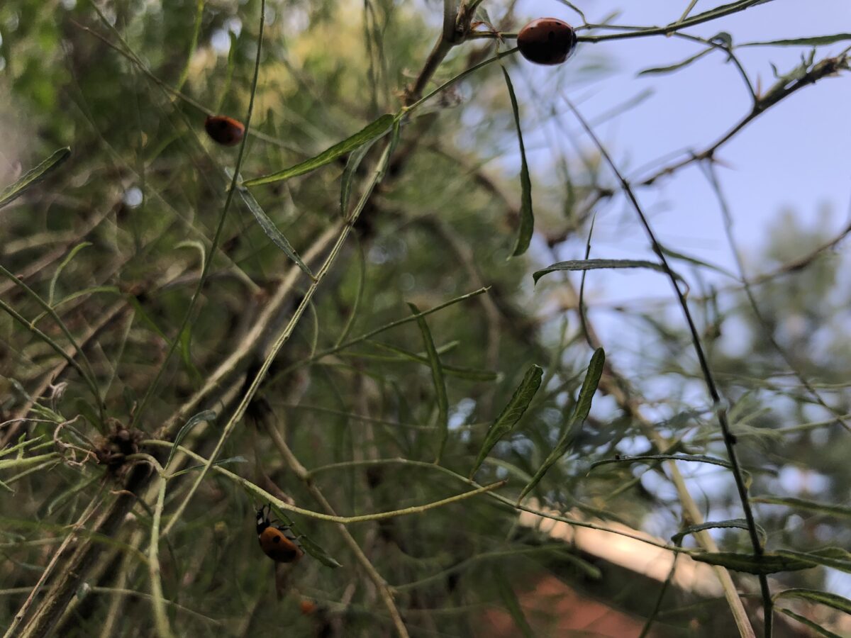 Meidän pihan hernepuussa leppäkertut nauttivat elämästään, niitä on siinä aina monia oleilemassa
