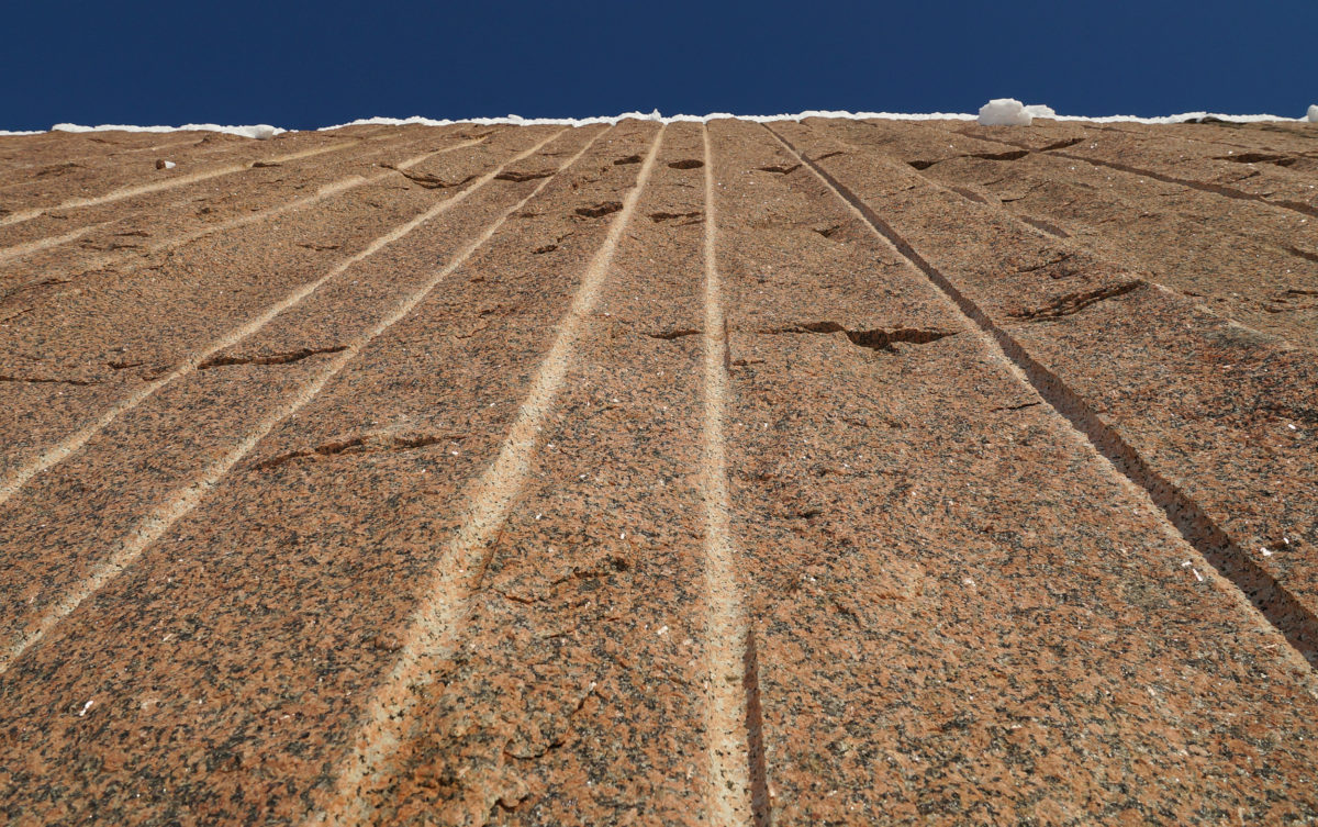 Kuva on otettu kivilouhimon graniittiseinämästä ja muistuttaa siitä miten korjaamattomat arvet louhinta luontoon jättää.