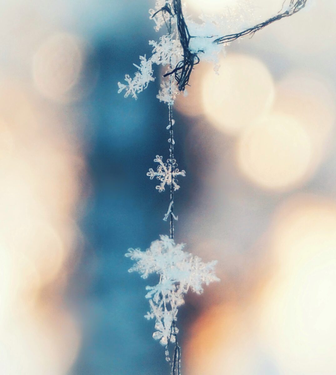 Naavaan kiinnittyneet lumihiutaleet ja auringon viimeiset säteet oli ikuistettava.