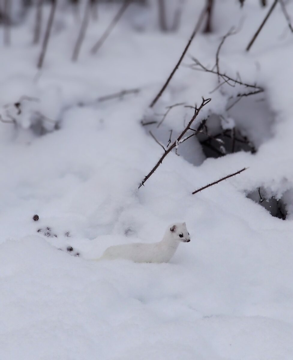 Seurasin ja tarkkailin usein aiemman asuntomme parvekkeelta takapihan luonnon menoa, kaupungin taajamassa Saimaan rannalla. Varsinkin talvella eloa oli paljon, kettuja tuli jään yli, rusakkoja, eri lintuja, näätä, ja erään kerran sitten tämä pieni kaveri. Nähtyäni hänen liikkeitä takapihalla, päätin nopeasti napata kamerani ja suunnata pihalle. Jäin odottelemaan puskien luo, missä ylhäältä olin eläimen viimeksi nähnyt ja sitten hetken kuluttua, hetken aikaa, minua onnisti!