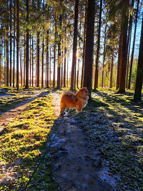 Ollaan 18.2.2024 Forssassa sunnuntai-kävelyllä metsässä, jossa oli hämmästyttävän vähän lunta verrattuna muuhun maastoon.