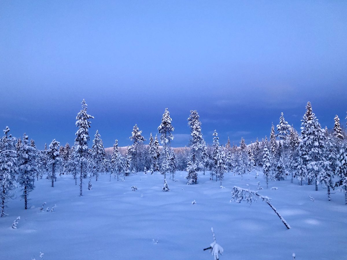 Kaunis sininen hiihtohetki Äkäslompolossa