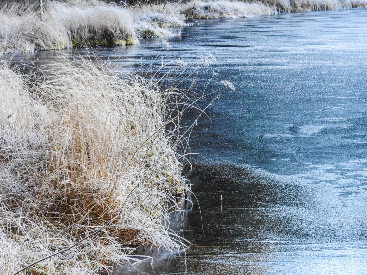 Kuvattu mökkirannastamme Suomusjärvellä syksyllä -18. Yöllä oli ollut kova pakkanen, ranta ja kaislat jäätyivät, aurinko oli matalalla marraskuussa. Onneksi oli kamera mukana ja sain ikuistaa hienon hetken