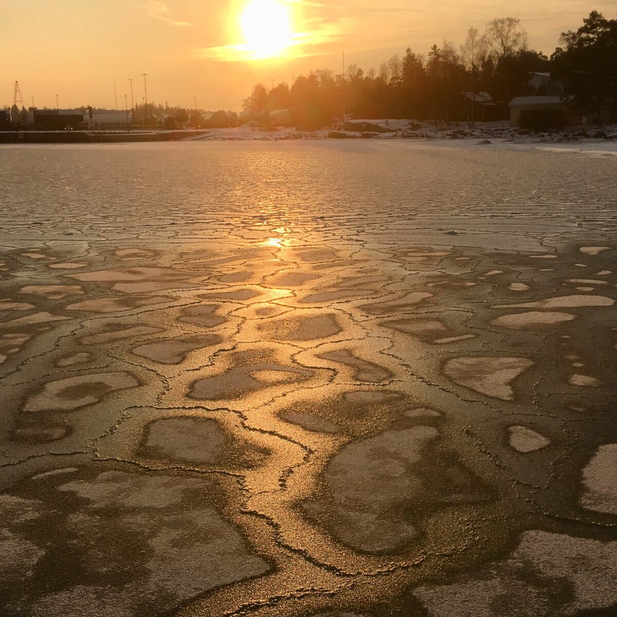 Meren jää auringon laskiessa sai kultaisen sävyn. Osuin paikalle juuri oikealla hetkellä.
