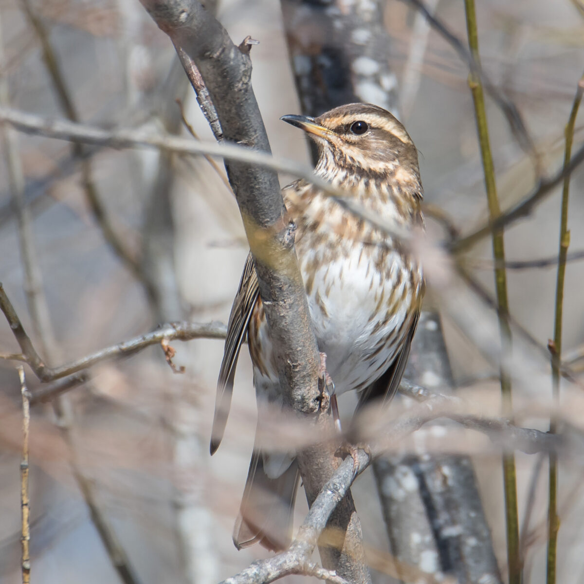 Näin kevään ensimmäisen punakylkirastaan (räkättirastaiden ohella) 13.4.2024. Kuvauspaikka Joensuu.