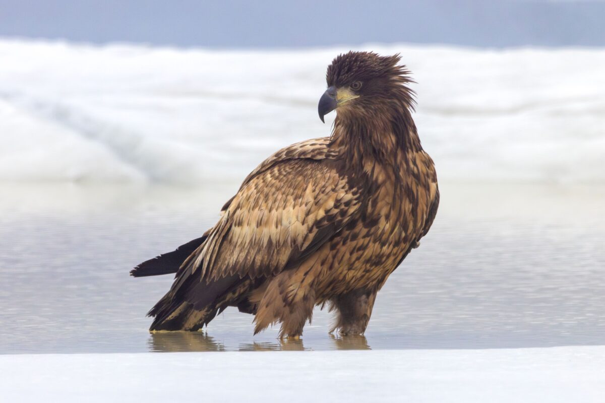 Lähijärvelläni on paljon merikotkia. Ovat tosi tarkkoja ihmisistä, mutta kalastajamiestäni ne seuraavat ja odottavat häneltä kalaisia välipaloja. Tässä piilosta kuvattu yhtä heistä kahlailemassa järven railossa. On se vaan huima tunne, kun saa seurata ja kuvata läheltä tuollaista uljasta petolintua!