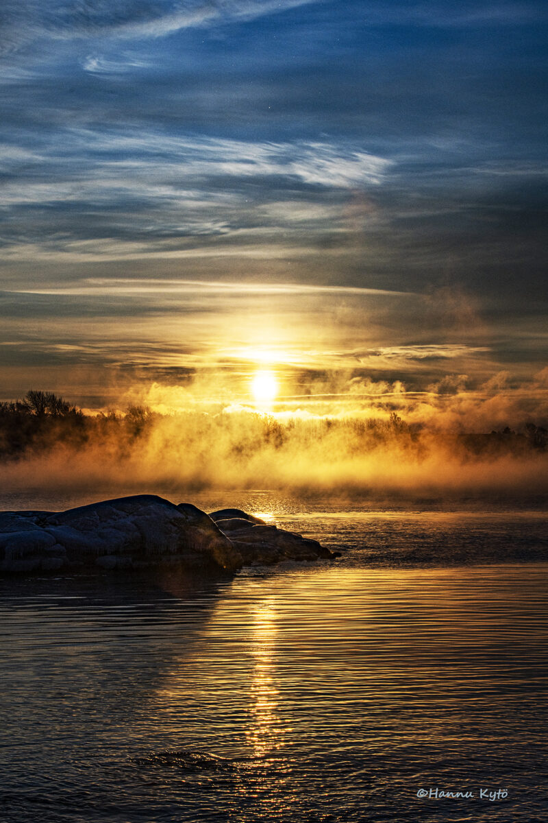 Merisavua aamun vastavalossa Suomenlinnan edustalla.