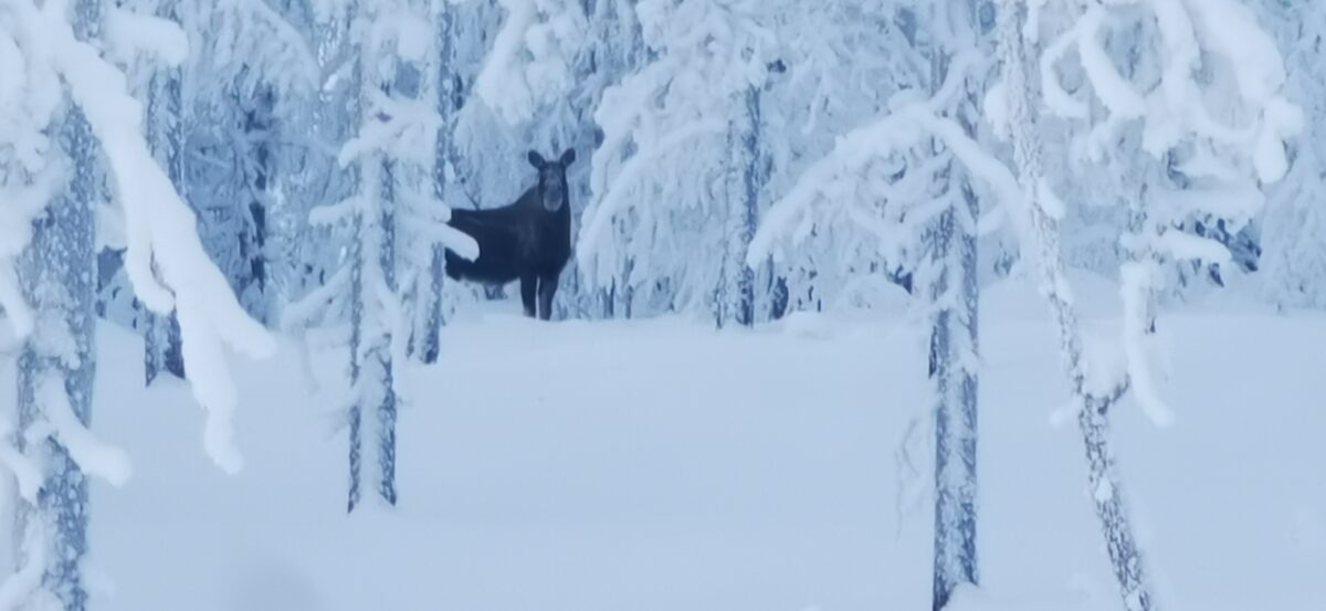 Hirvi emo ja vasa metsän siimeksessä tammikuun 6.1.24