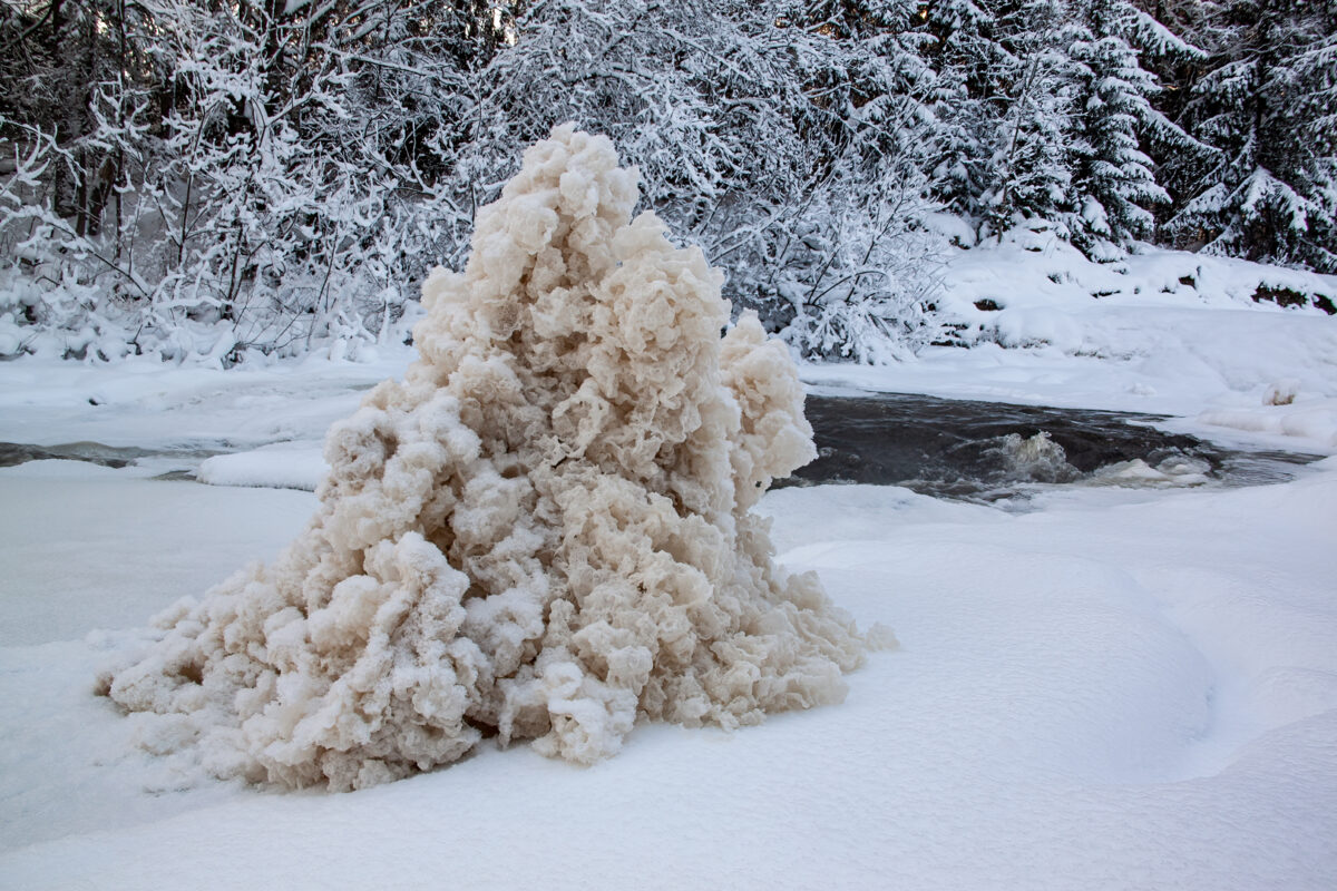 Orimattilan Virenojalla Porvoonjoen Myllykulmankoskeen nousi pitkän ja erittäin kylmän ajanjakson lopulla jäätyneestä kosken vaahdosta kasoja, jotka \"elivät\" ja kasvoivat koko ajan.