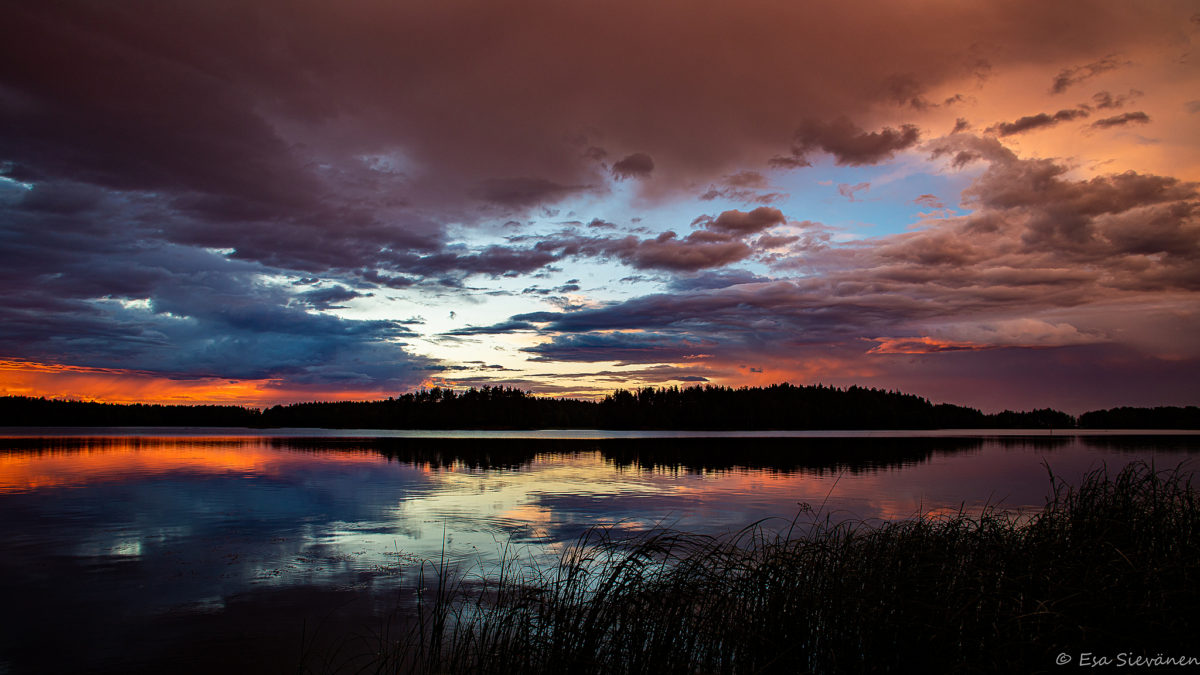 Kuva on Saimaalta 1.7.2019. Samana päivänä oli Lappeenrannassa rankka raesade, joka sai aikaan runsaita jää- ja vesivirtoja sekä tulvia kaupungin kaduilla. Kun myrsky meni ohi, oli taivas illalla tuon näköinen.