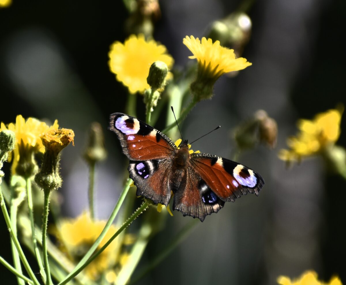 Kuva on otettu kesämökiltä, Särkisalossa. Pihalla on paljon eri hyönteisiä sekä puutarhassa että rannassa.