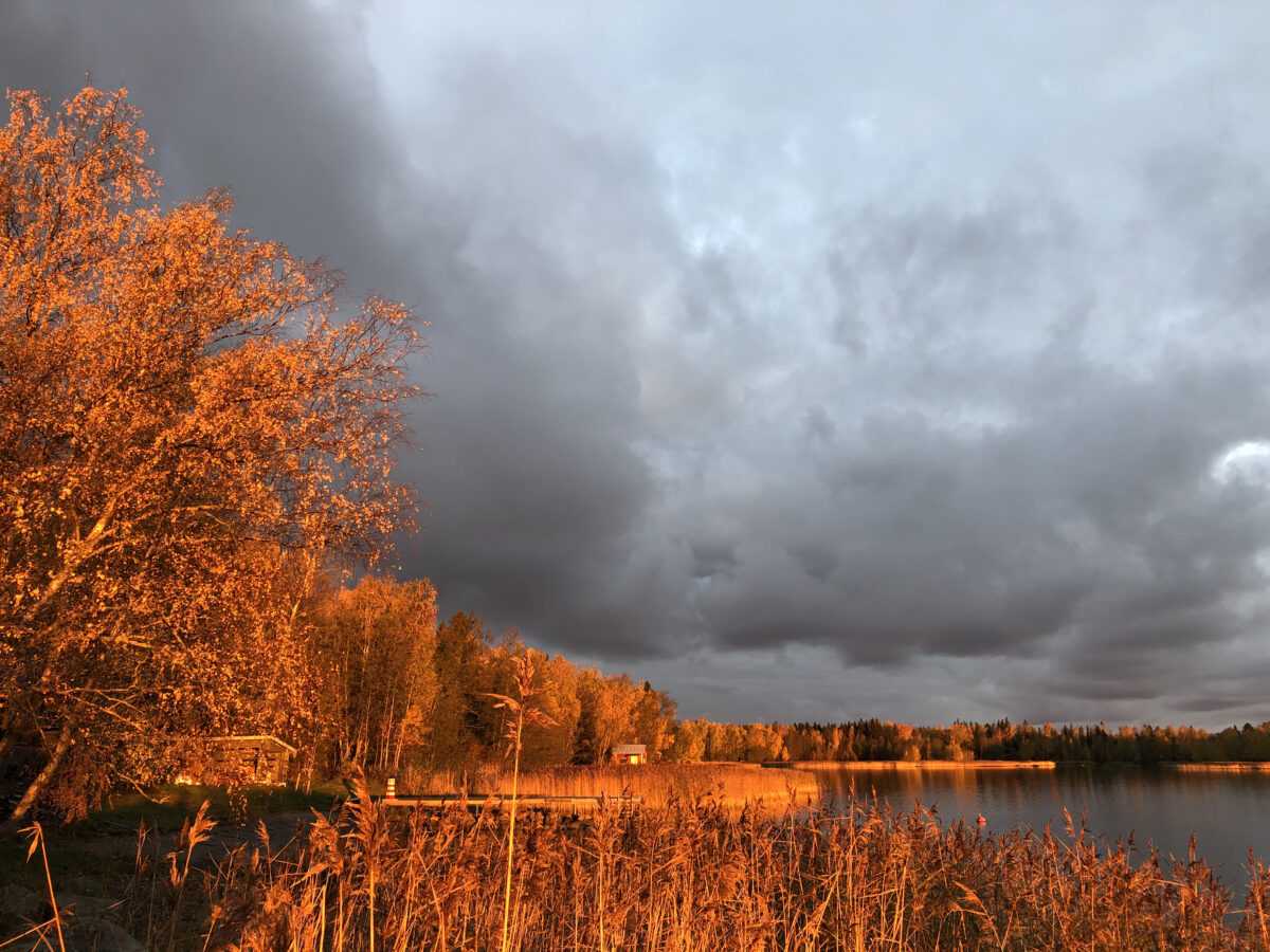 Upea aamu oranssin sävyin Vaasan saaristossa.