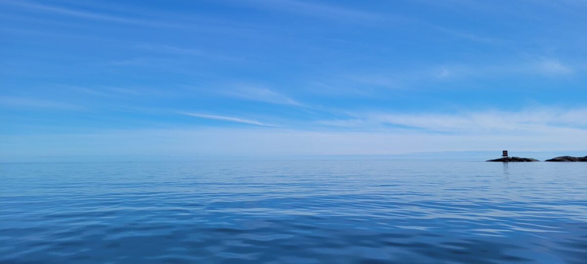 Saaristomerellä purjehtimassa. Tyyni meri kohtaa taivaan. Meri ja taivas ilman rajaa.