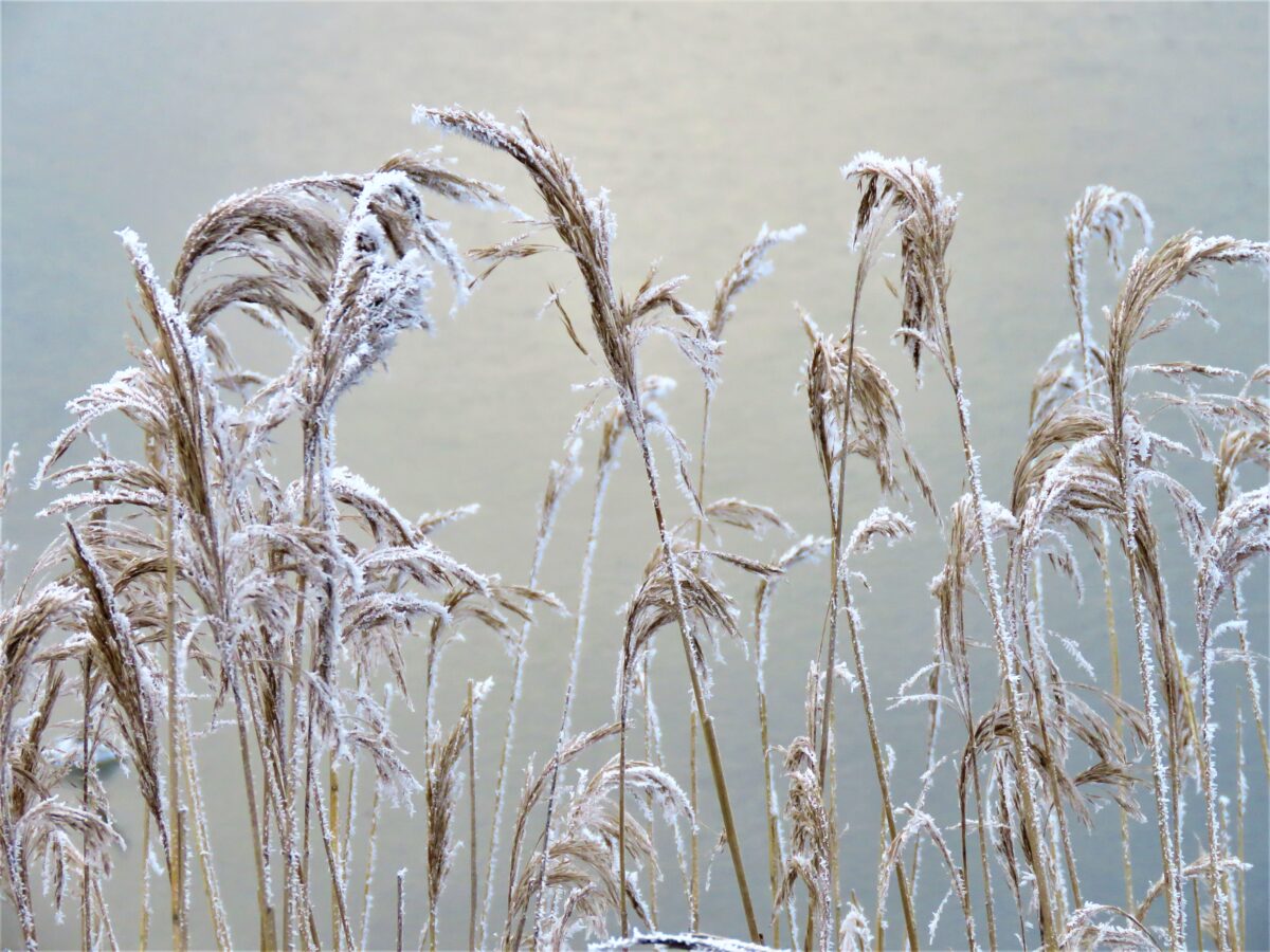 Huurteinen kaislikko Taivassalossa loppiaisena 2021.