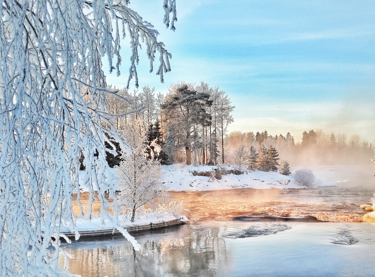 Joulukuun pakkaspäivä. Tarkoituksena oli kuvata koskikaroja, mutta maisema vei voiton.