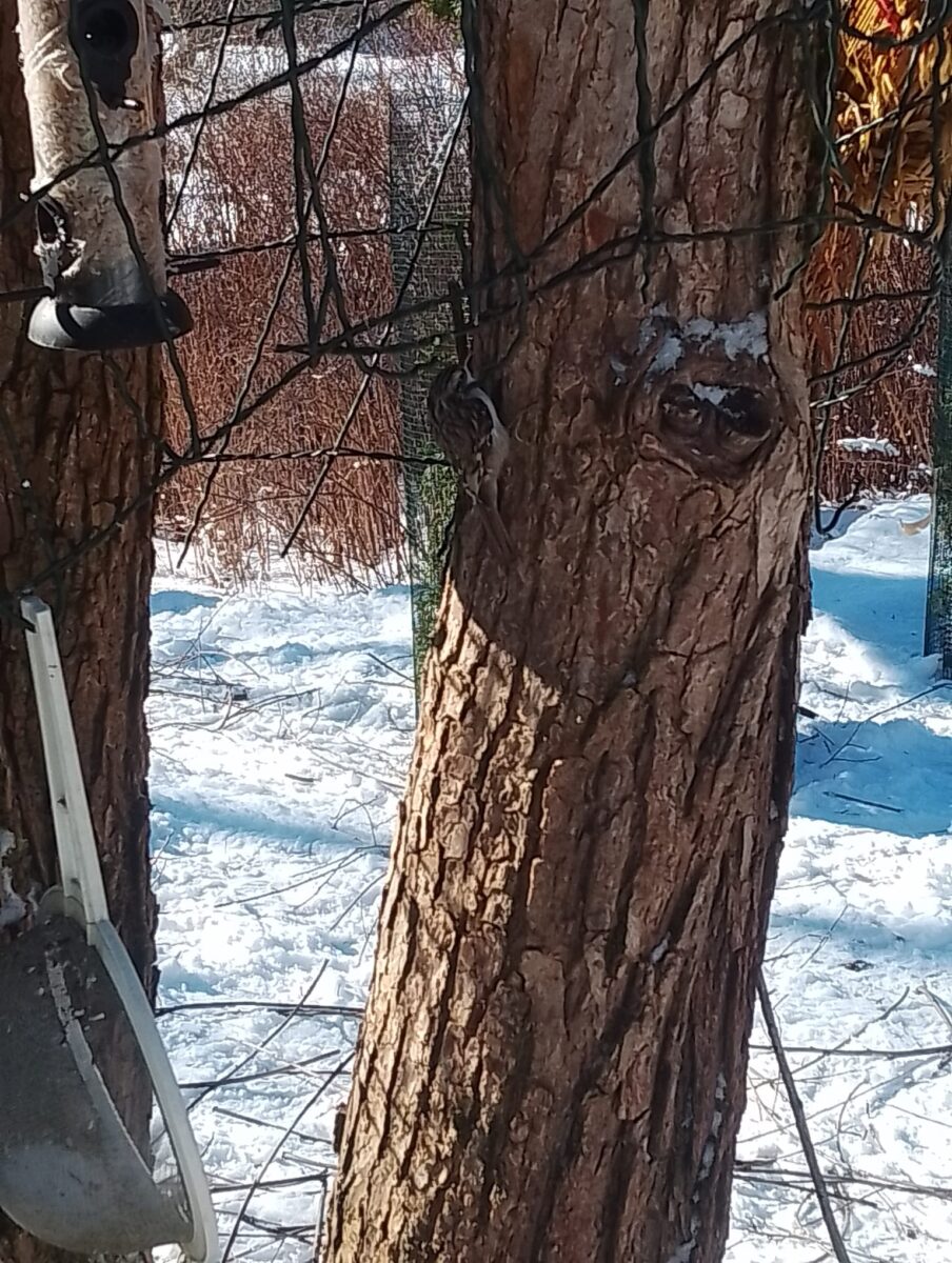 Puukiipijä ilmestyi puun rungolle oksien leikkaajien iloksi.