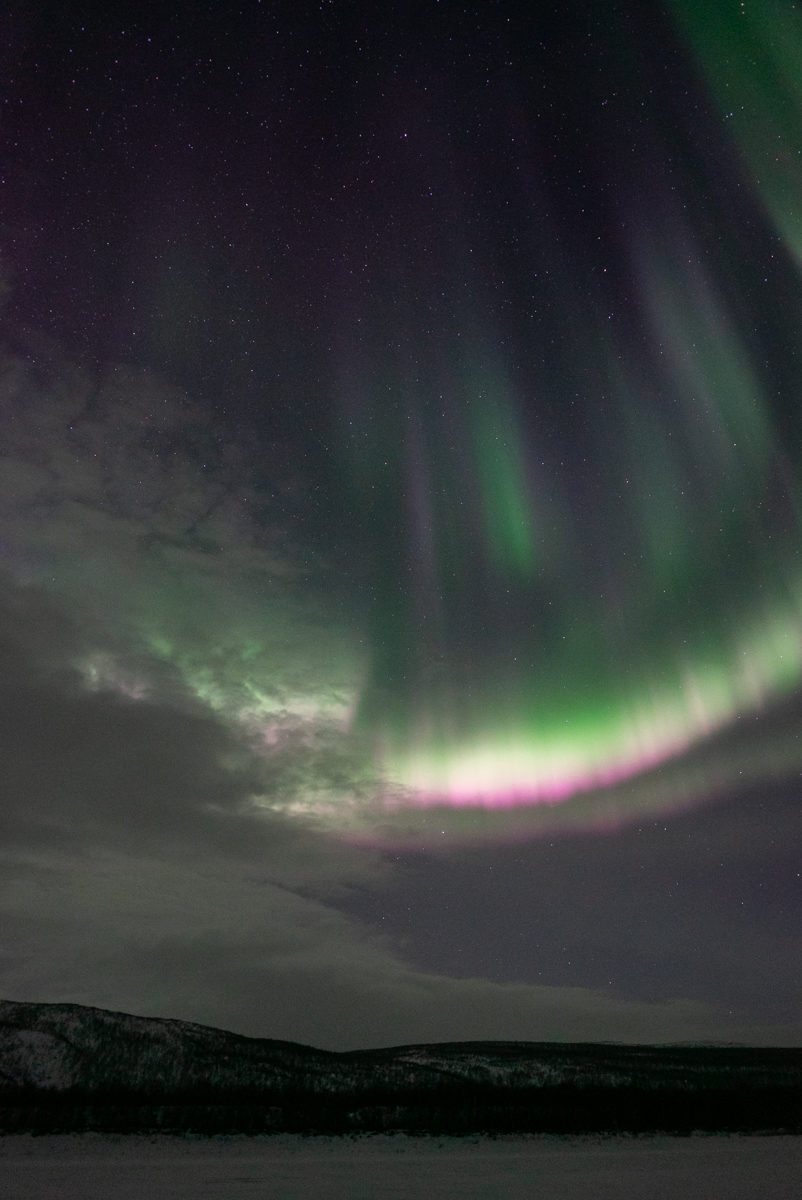 Nämä kauniit revontulet toivottivat kaamos- ja revontulivalokuvauskurssin osallistujat tervetulleeksi Utsjoelle.