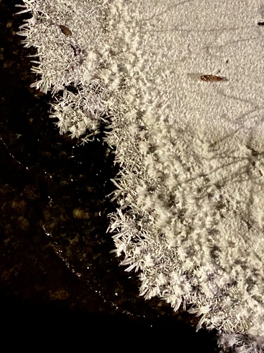 On kylmä, pakkanen saa voimaa viimasta.Ulkoilemaan täytyy itsensä pakottaa, muita kulkijoita ei ole.Hetken kuljettua sen huomaa talvi on mystinen ja tarjoaa rohkealle elämyksiä.Pitsijää yllättää sillalta kurkistajan, kylän läpi virtaava joki on saanut kauniin koristelun ja juhlahetkensä.Talvi on kaunis.