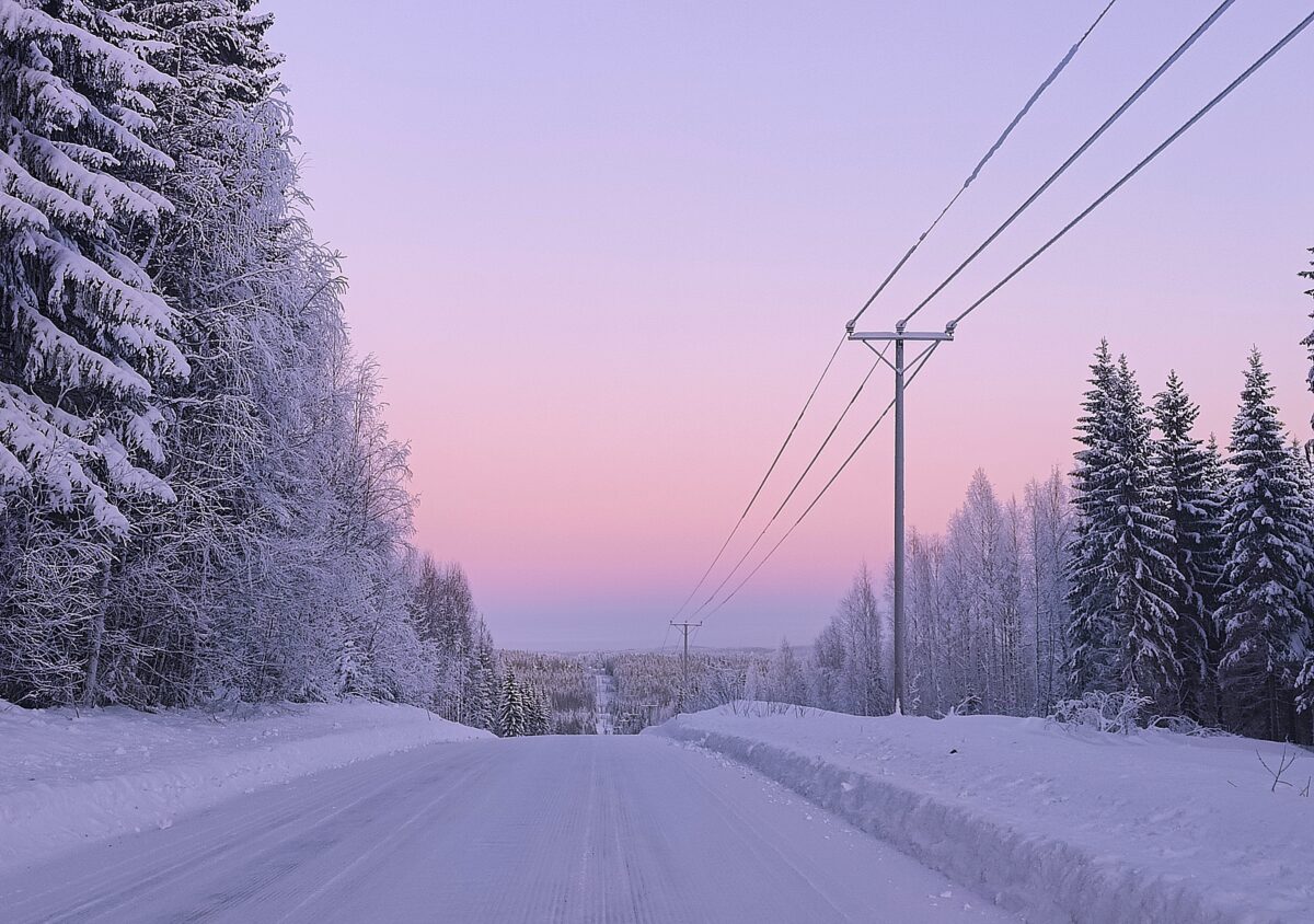 Kuva on otettu 12.2.2024 Pyytivaaralla, Kontiolahdella. Pakkasta oli 30 astetta ja maisema oli lumoavan kaunis pastillinsävyissään.
