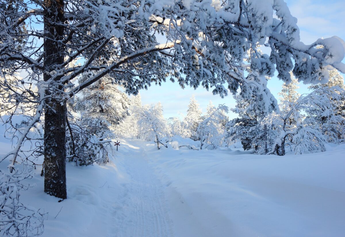 Inarin Tuulispään alueelta kuvattu kaunis näkymä helmikuisena pakkaspäivänä.