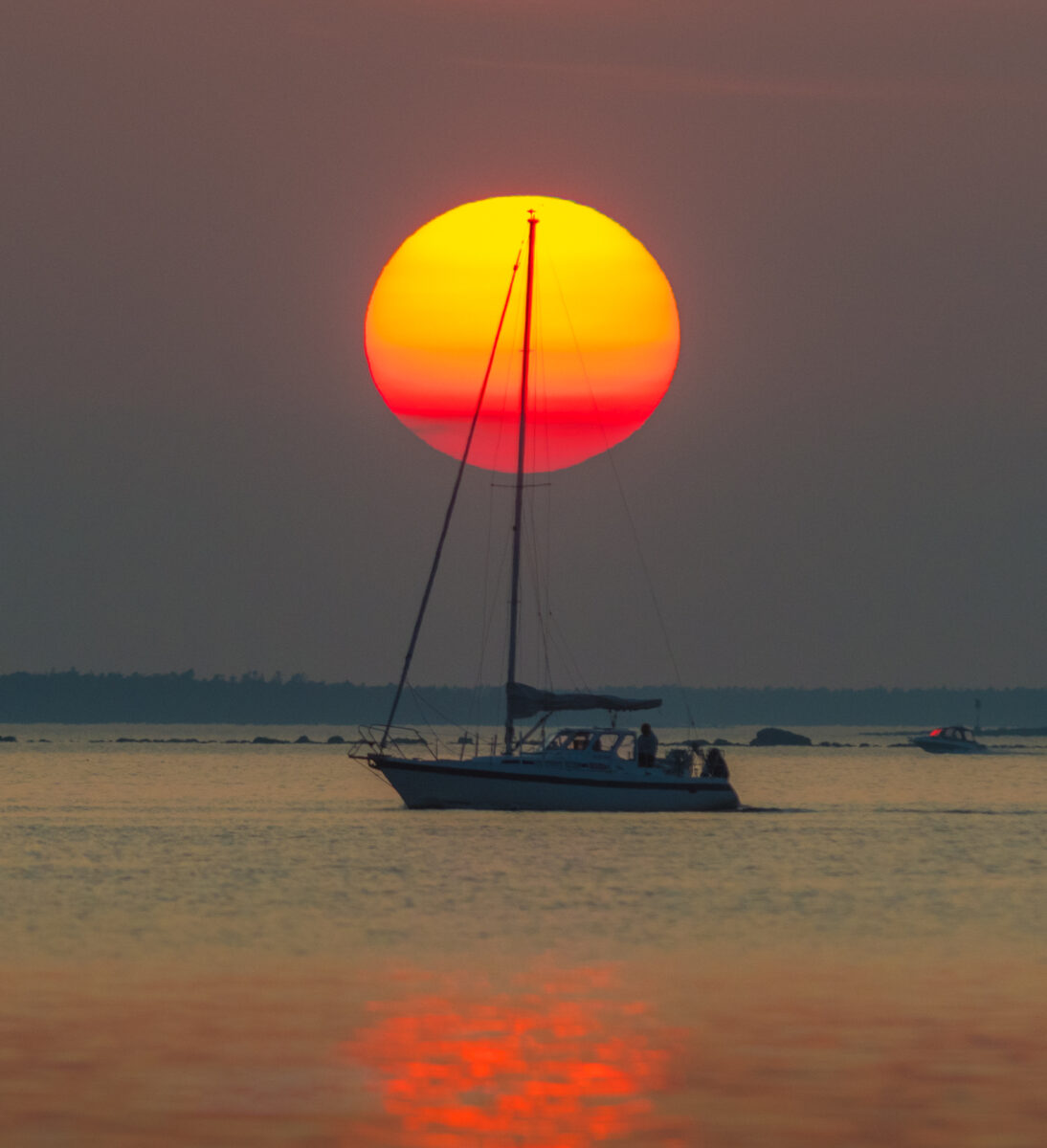 Kuva otettu Kokkolan edustalta, yksi syksyn ainoita hetkiä jolloin aurinko laski punaisena. Purjevene tuli ihan sattumalta mukaan kuvaan.