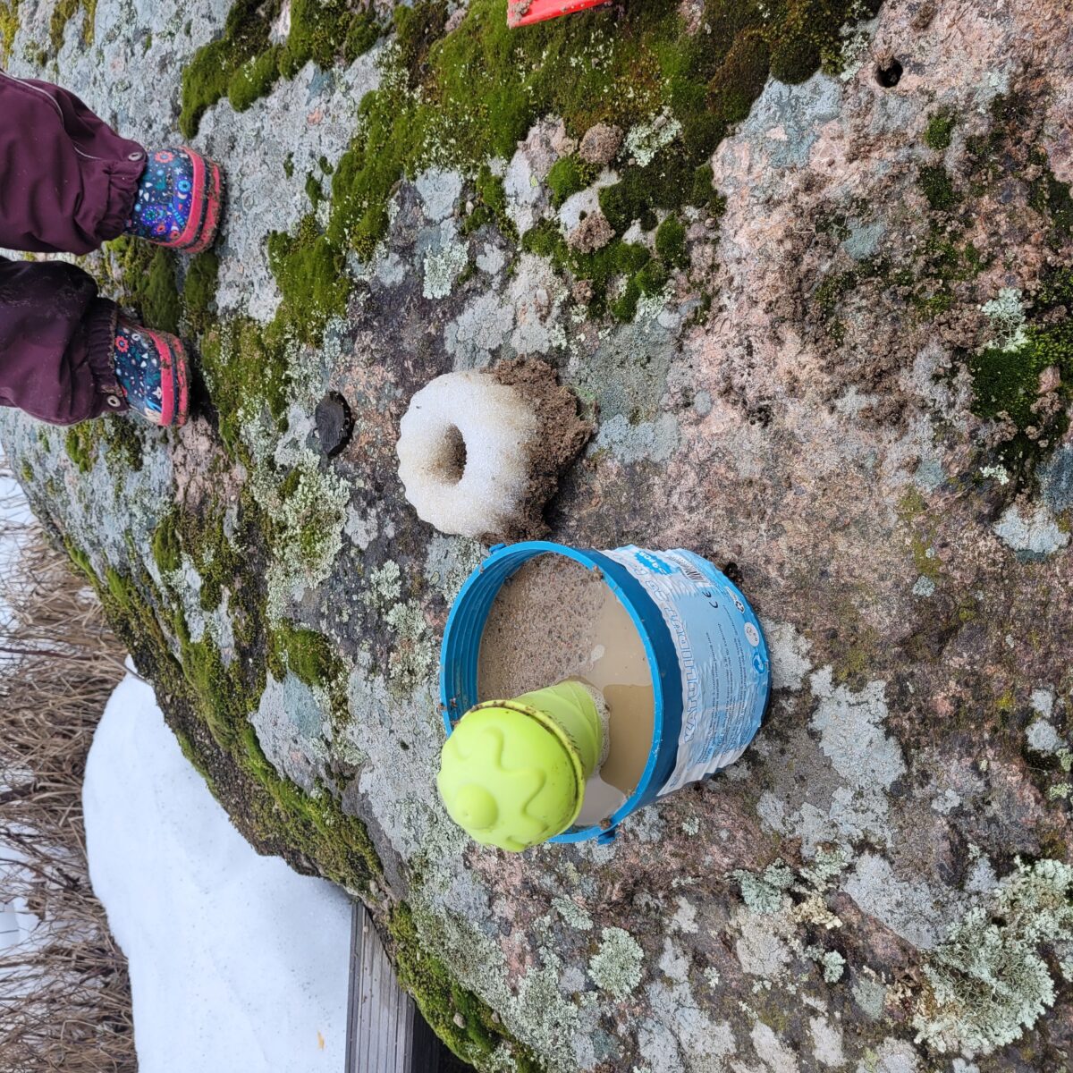 Kevään ensimmäinen hiekkalaatikkoleikki omalla pihalla.