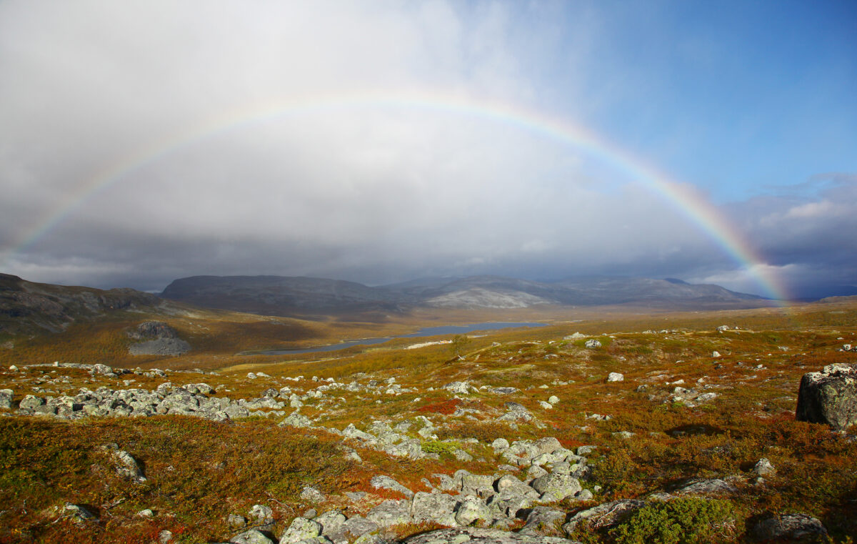 Olimme ruskaretkellä Kilpisjärvellä ja vaelsimme Saanan polulla. Tämä kaunis sateenkaari oli seuranamme melkein koko ajan, välillä tihkutti vettä.