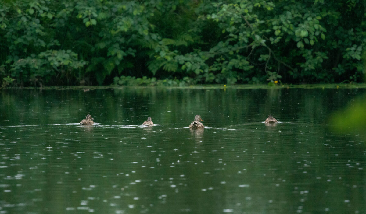 Vietin viime kesänä sateista ja synkkää iltapäivää pienellä lammella ja niin vietti myös tämä sorsaperhe. Muutaman kuvan räpsäsin kunnes sade yltyi niin kovaksi, että kamera jouti suosiolla reppuun ja matka kääntyi kotia kohti.