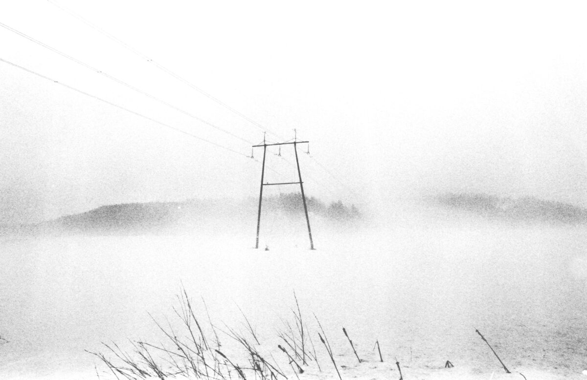 Tämä on kuvattu viime vuonna filmikamerallani, ylivalotettuna jotta talvisuus tulee esiin ja muokattu lisää skannauksesta. Mielestäni kuvassa on ihmisen ja luonnon kontrasti. Ihmisen luomus jää lopulta karusti luonnon jalkoihin kun mennään ääriolosuhteisiin. Talvessa on voimaa jota ihminen koittaa omilla energian tuotannoillaan selättää