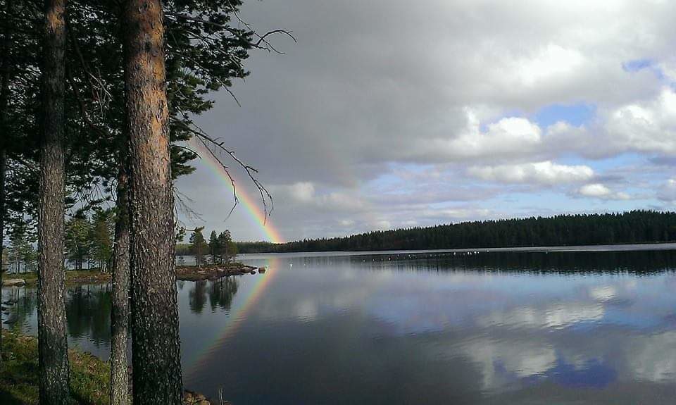 Sadekuuron jälkeen maisemaan ilmestyi sateenkaari, kaksikin. Tunnelma oli erikoinen. Kuvattu kännykällä, joka oli ulottuvilla heti.