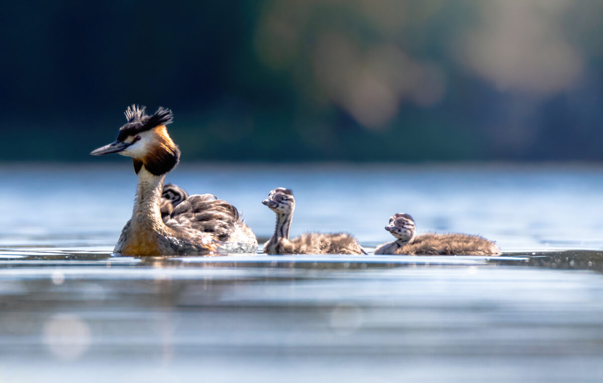 Olin kauan odottanut mahdollisuutta kuvata silkkiuikun poikasia. Kuvassa näkyy emo ja kolme poikasta, joista yksi on emon selässä. Poikaset vasta harjoittelivat uimista ja välillä piti levähtää emon selässä. Koiras on parhaillaan kalastamassa ruokaa jälkikasvulle. Kuva otettu Helsingin Töölönlahdella kesäkuussa 2021.