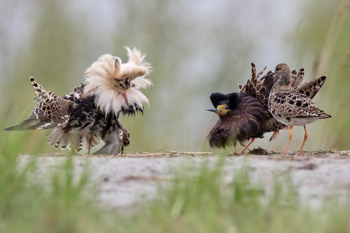 Suokukkojen soidin on mielenkiintoista seurattavaa. Koiraat värikkäine kauluksineen kumartelevat, hyppivät ja nujakoivat kiinnittääkseen vaatimattoman värisen naaraan huomion.