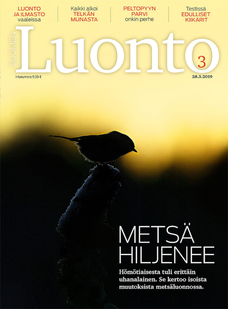 Hömötiaisesta tuli erittäin uhanalainen. Lajien uhanalaistuminen on merkki isoista muutoksista metsäluonnossa. Kannen kuva: Jari Peltomäki