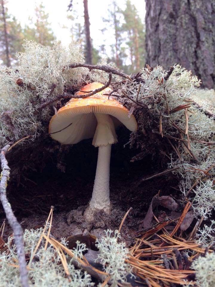 Kuva on otettu Rokuan jäkäläkankaalla, missä sienet ja tatit kasvaessaan puskevat itsensä päättäväisesti jäkälämaton läpi.
