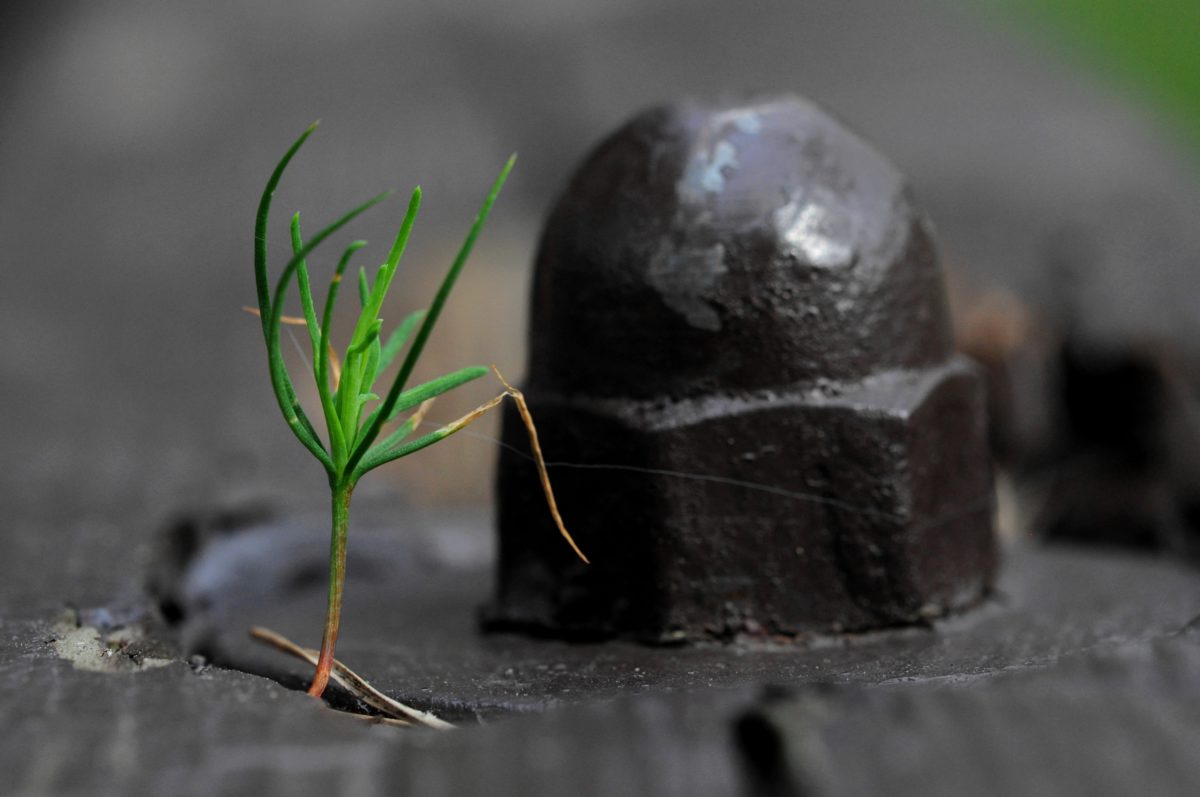 Puun siemen ei paljon tarvitse itääkseen. Tästä ei kuitenkaan taida tulla isoa puuta...