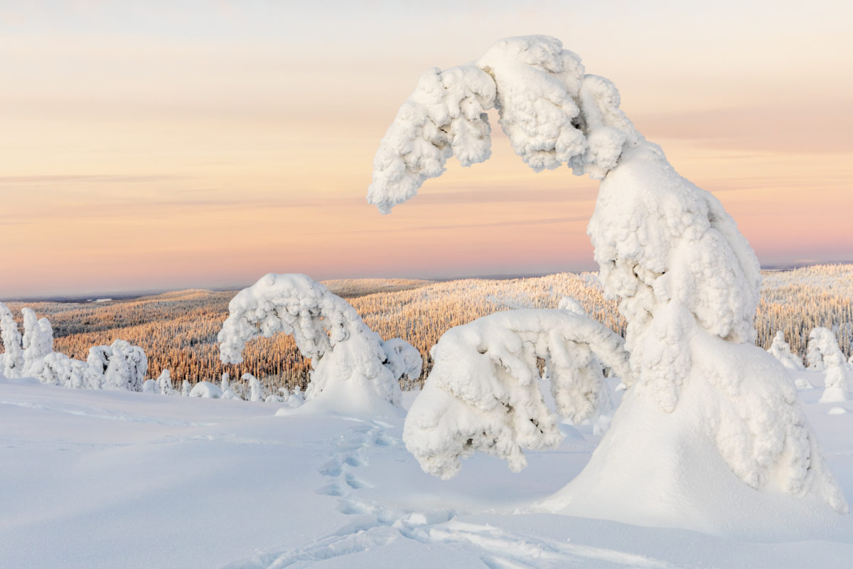 Riisitunturin maisemaa kera kauniin auringonnousun. Pakkasta reilu parikymmentä. Joulukuu 2019. Canon EOS 5D Mark IV 1/30 s f/8 42 mm