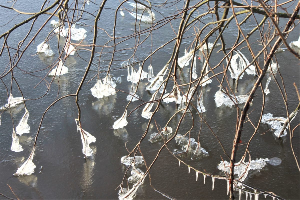 Talvi pitää otteessaan veteen kurottavia oksia.