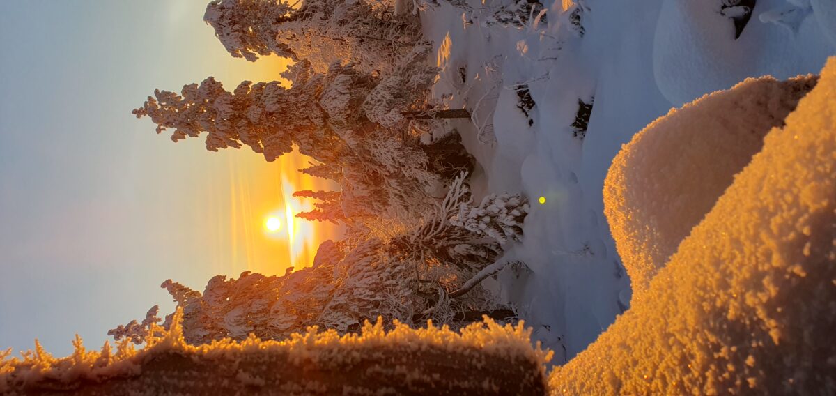 Erään mökin terassilta kuvattu kaunis pakkaspäivän aurinko