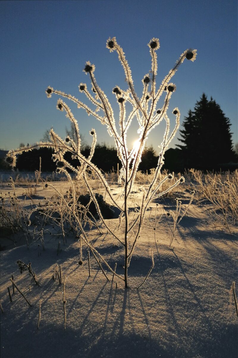 Talvisen luonnon komistus kirpeänä pakkaspäivänä.