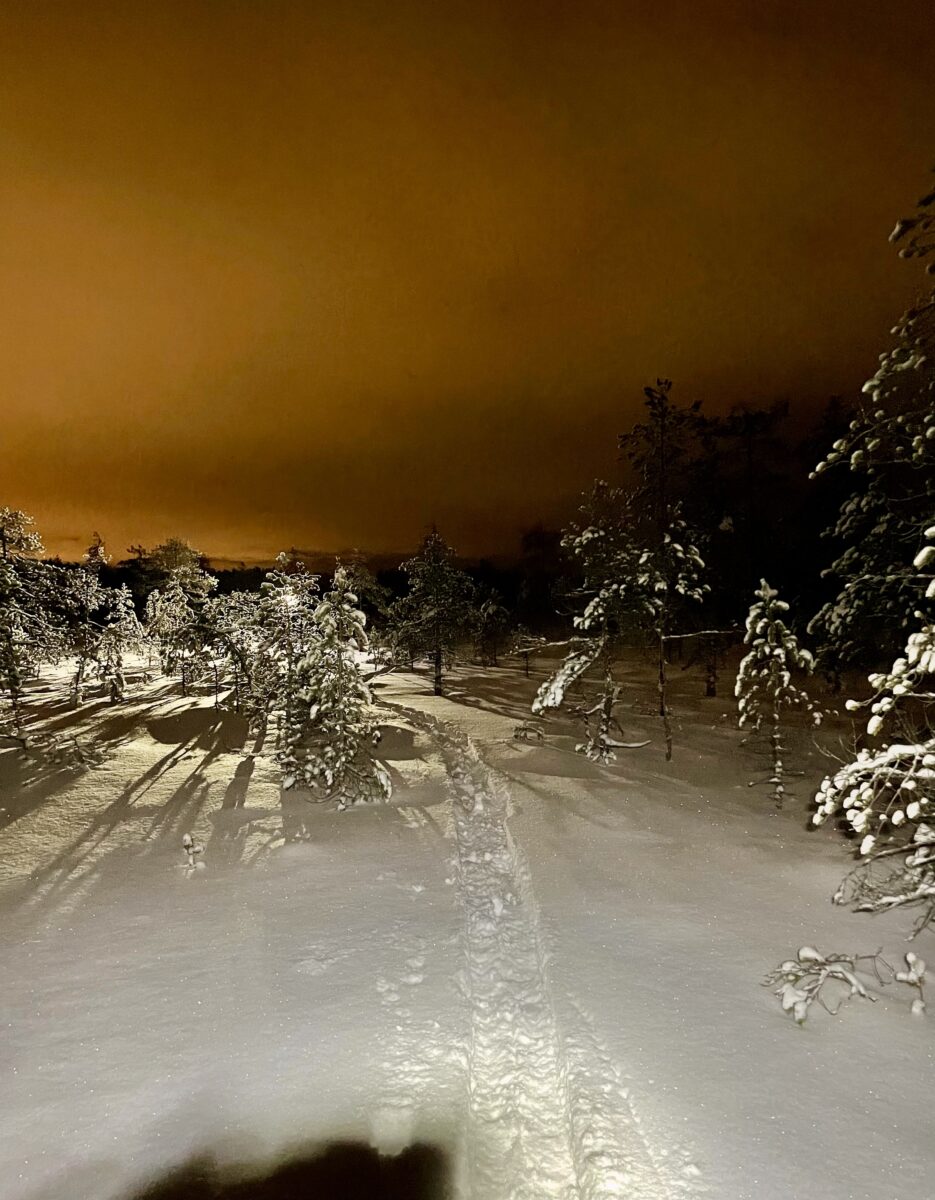 Lumikenkäilyä suolla otsalamppujen valossa!