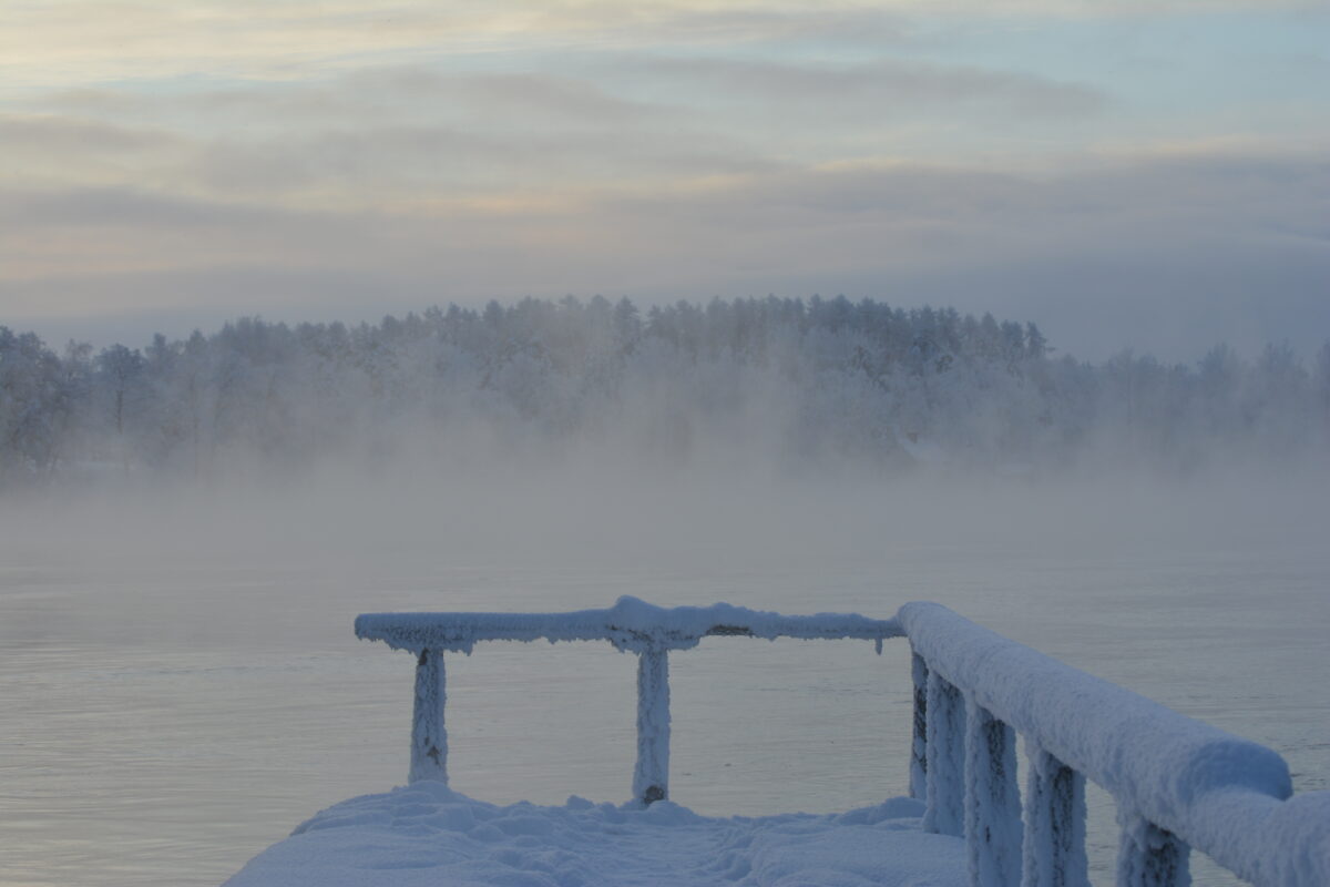 Tässä on kuva talviaamusta joen varrella.