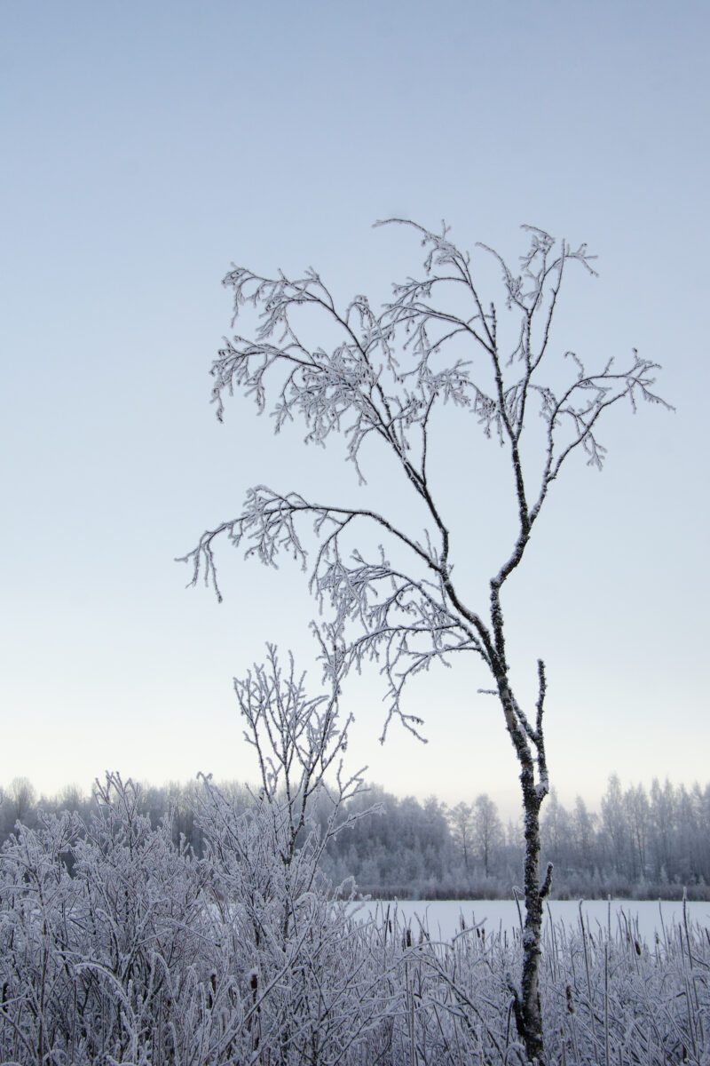 Lehdettömyys ja talven värit tuovat puun muodot esiin.