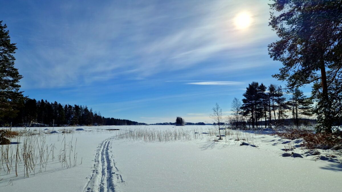 Aurinkoinen talvipäivä houkutteli eiliselle itsetedylle ladulla. Hyvä on hiihtäjän seurata omaalatua.