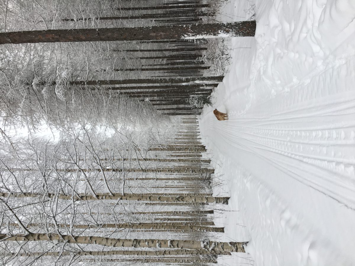 Tien molemmin puolin on aikanaan ollut viljelyspeltoa. Nyt siellä kasvaa koivut ja lehtikuuset. Tie vie rauhaisaan ja hyvin hoidettuun kotitilan metsään joka on minun onnen paikkani. Koirakin nauttii kävelyretkistä.