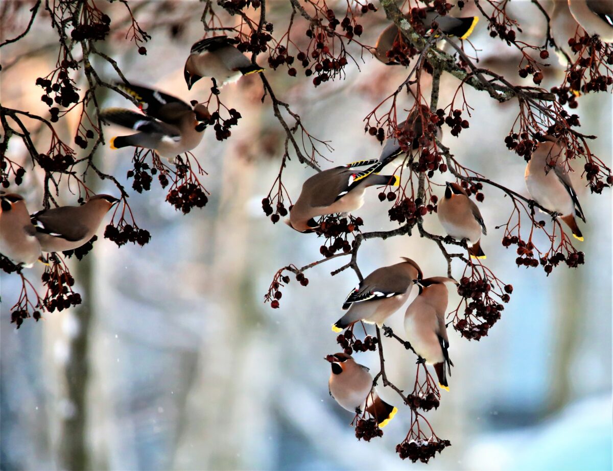 Tilhiparvi syömässä,kuvattu Raumalla 27.12.2021